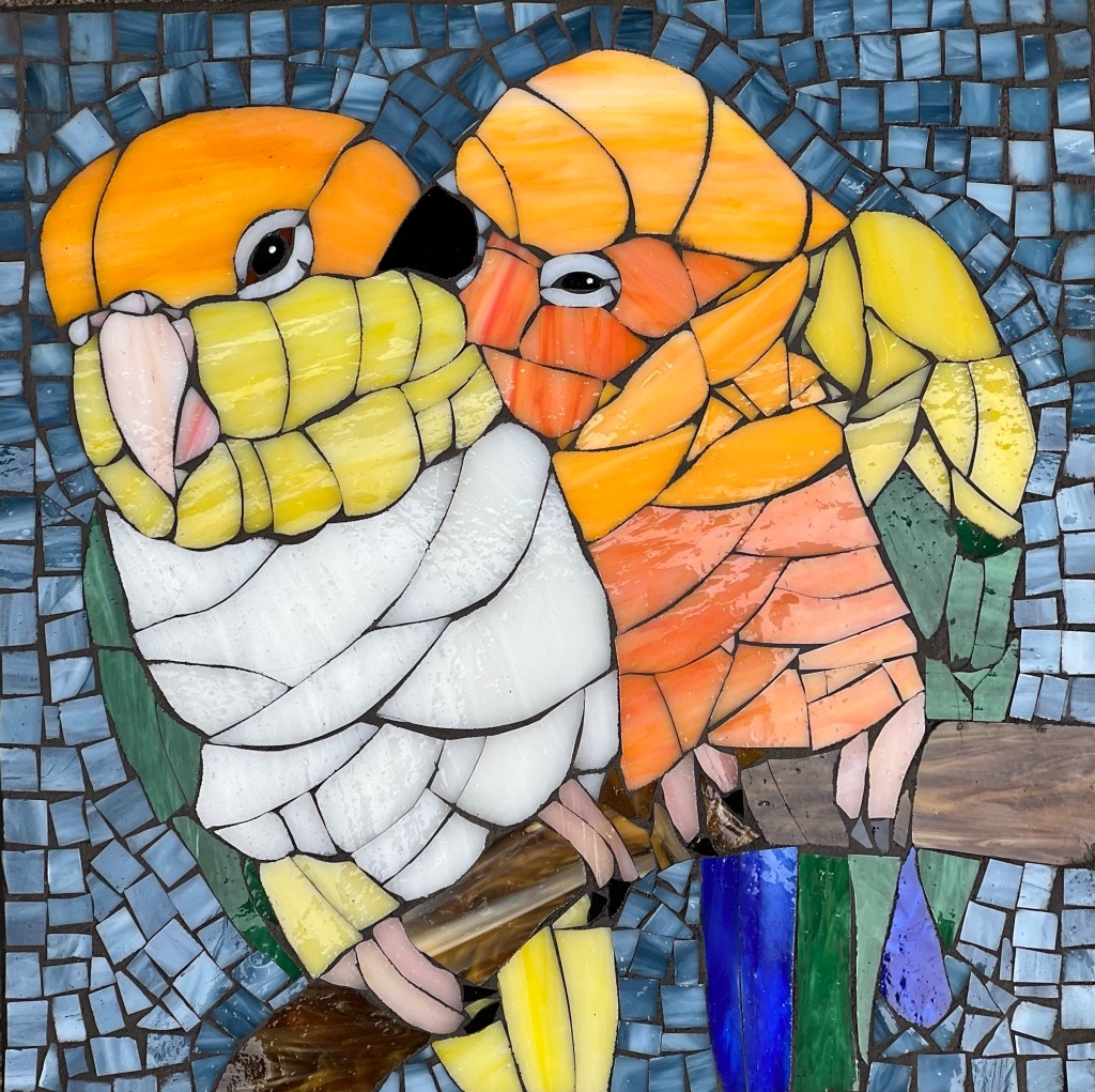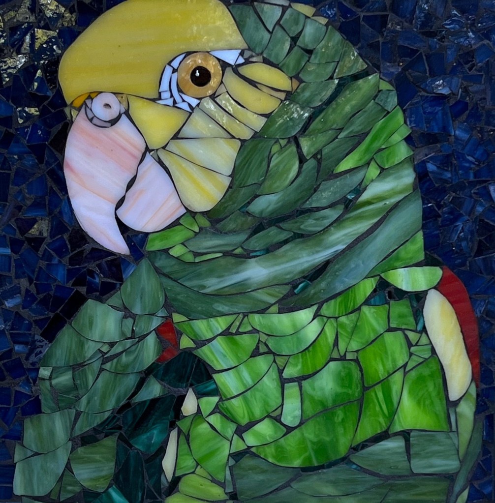 I create custom stepping stones as well as other handcrafted items, which I sell in my Etsy shop. Although I set up an Etsy shop a few years ago, it was only during the pandemic that I started posting work for sale. I find it enormously rewarding to meet parrot lovers from across the country and to work on custom pieces. These are a few examples of my custom work. While purchasing my work is not tax deductible, nor do the profits go to the nonprofit, it does provide me with a source of income so I can continue to volunteer my time. It has always been important to me that PRS remains an all volunteer organization and that all the money raised goes directly to the care and housing of the birds. It’s also a lot of fun!